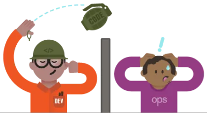 Le développeur, quand a lui, a pour mission de faire évoluer la plateforme. Il doit suivre les besoins marketing pour créer de nouvelles choses qui feront grandir l’entreprise. On lui donne, de plus, bien souvent peu de temps pour réussir à créer ces nouvelles fonctionnalités, ce qui se traduit souvent par des choses livrées et mal finies. Ces choses mal finies mettent en péril la stabilité de la plateforme si chèrement pacifiée par les ops, ce qui les rend d’autant plus méfiant à l’idée d’intégrer des nouveautés. Les dev deviennent donc une source d’instabilité pour les ops autant que les ops sont un frein à la mise en production du travail des dév.
